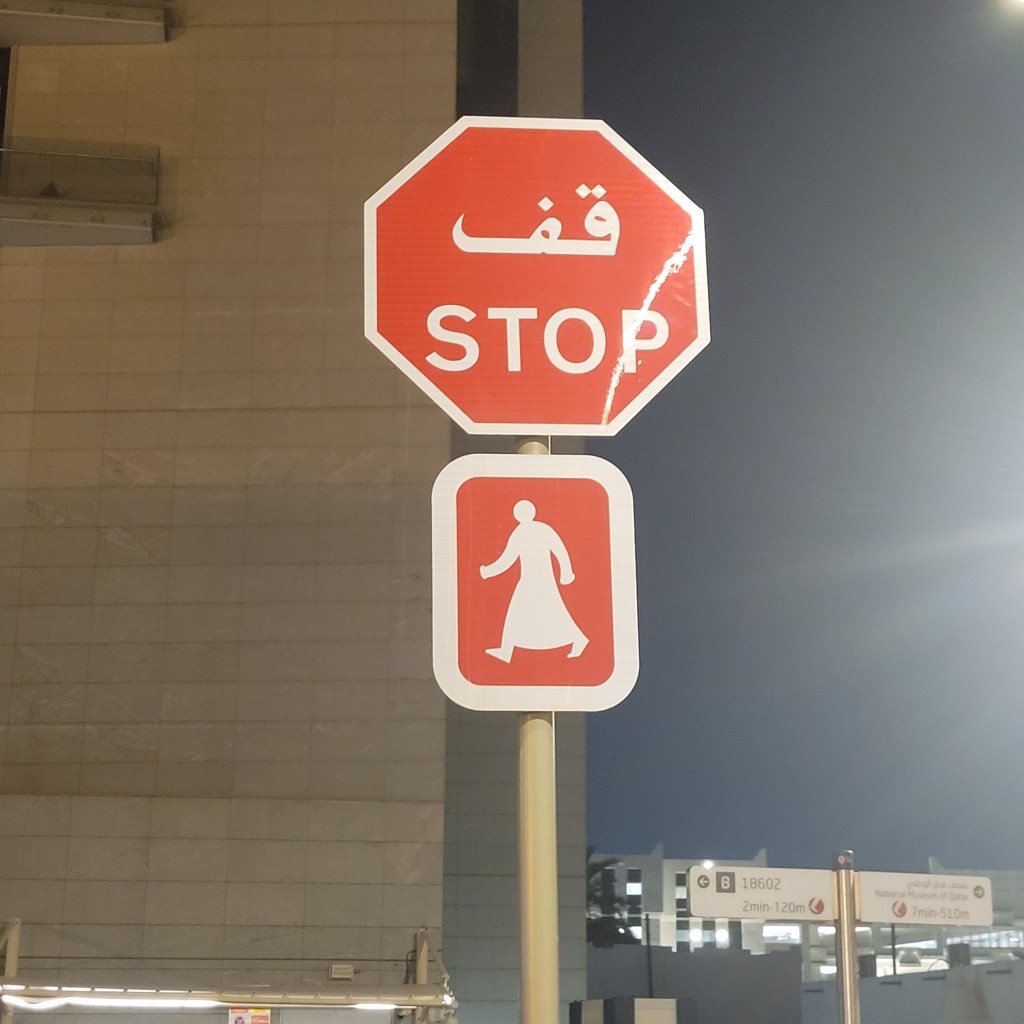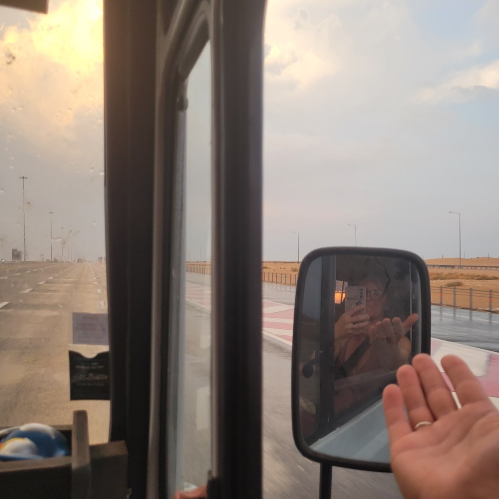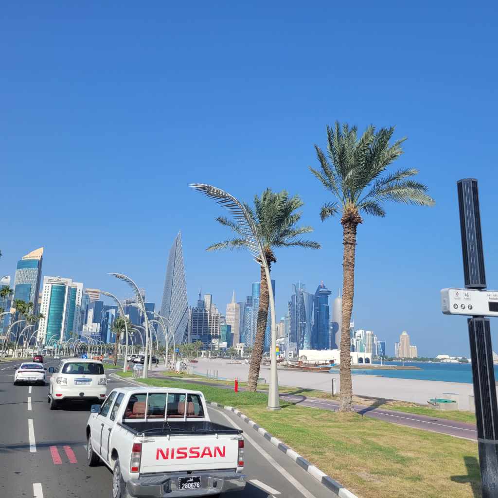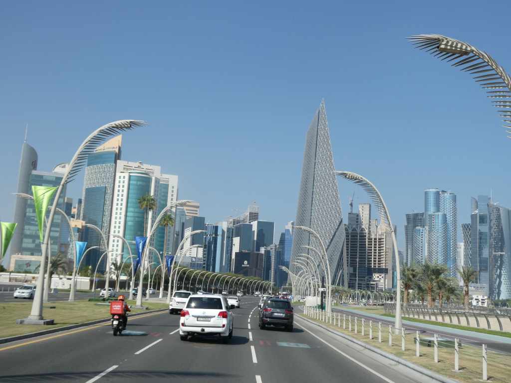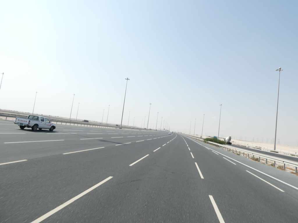 Ici le ton est donné, des drives à tout va : drive banque, drive nourriture, drive assurance, centre commerciaux flambants neufs.. au milieu du désert. On se rend vite compte que la vie se fait uniquement à travers la climatisation ! Alors c’est fenêtre grandes ouvertes que nous pénétrons dans cette île.. car pour nous la clim’ est toujours en option ! La chaleur est étouffante et pourtant nous aurons nos premières et uniques gouttes de pluie en arrivant vers Doha la capitale.