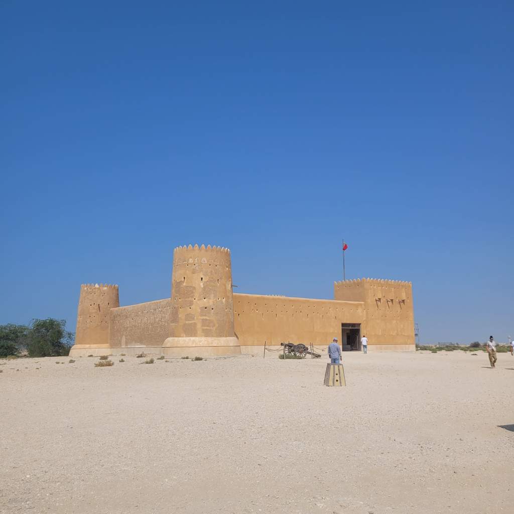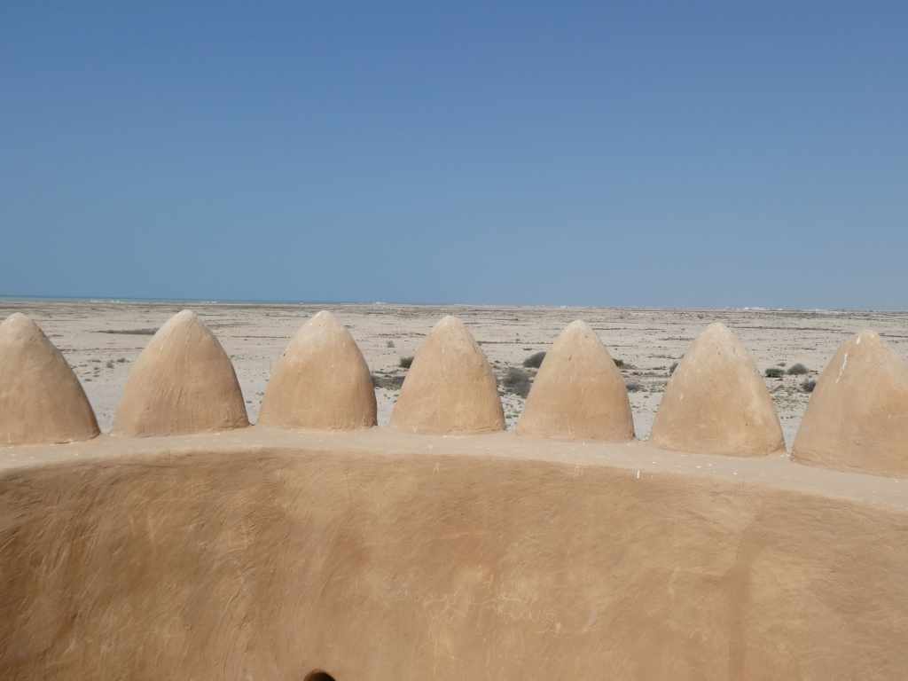 Nous décidons de visiter un peu plus l’île en profondeur, mais à part du désert elle ne nous offre pas beaucoup d’opportunité de « visites » car même les villages y sont rares.. nous repérons un fort et décidons de nous y arrêter.. malheureusement il n’y a rien d ‘autre que l’enceinte et nous passerons vite notre chemin.. Le fort d’Al Zubarah, qui date du XXe siècle et est l’un des monuments les plus importants du site archéologique d’Al Zubarah, classé au patrimoine mondial de l’UNESCO. C’est le seul du pays.