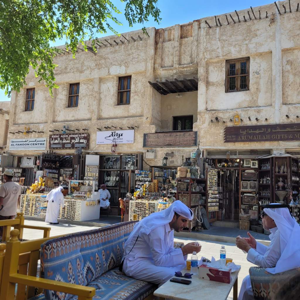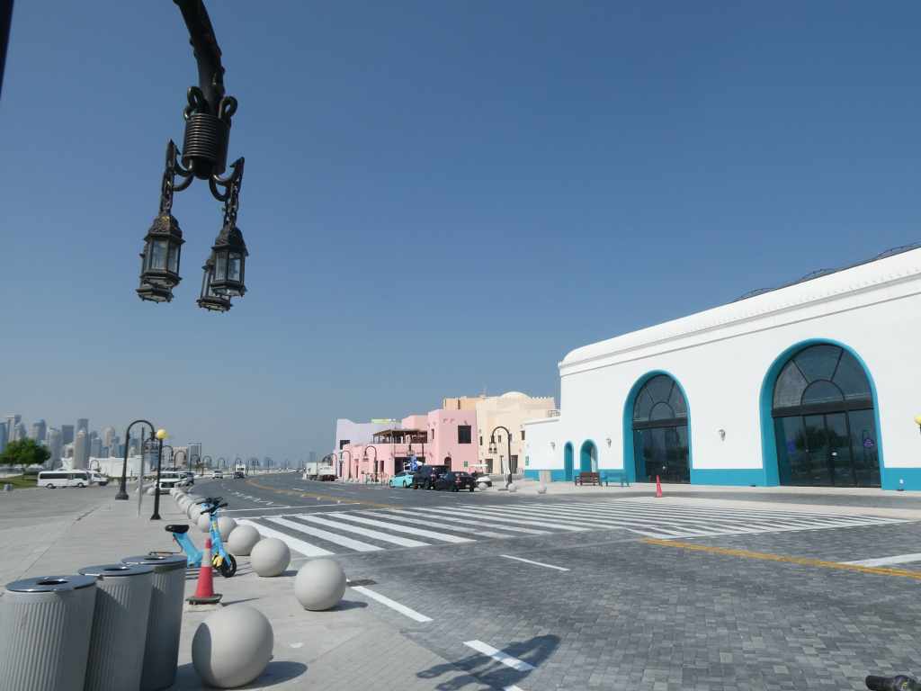 Mina est un quartier coloré situé au nord de Doha où nous décidons de nous arrêter. Le quartier est vide, même les magasins ou restaurants sont fermés.. l’ambiance est particulière. Nous nous rendons dans le sublime marché aux poissons et décidons d’en acheter ainsi que des gambas pour le barbecue de ce soir..