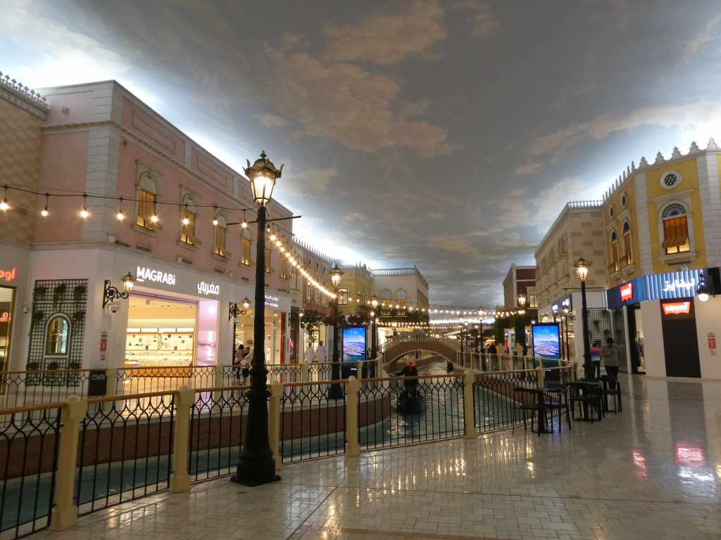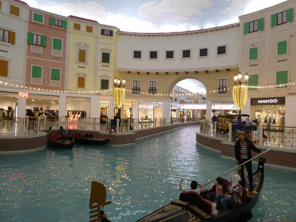 Nous avions entendu parler des malls et de la décadence des pays du golfe, et nous avions pu en avoir un sacré aperçu au Koweït ou à Bahreïn, mais nous ne nous attendions pas au Villagio mall de découvrir une véritable réplique de Venise où l’on se déplace.. en gondoles! Patinoire, parc d’attraction, climatisation à son maximum, encore une image déplorable de la surconsommation et de la richesse incontrôlée..