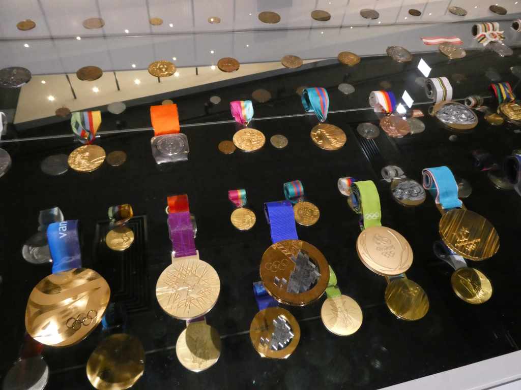 Nous sommes à proximité d’un magnifique musée du sport olympique, nous y passerons toute une après-midi. Il est à l’image du pays.. hors normes. De nombreux ateliers sportifs et ludiques font le bonheur des filles mais nous découvrons également une stupéfiante collection d’objets ayant appartenus aux plus grands sportifs de ce monde.. Il est évident qu’avec beaucoup d’argent il est aisé de se créer une si jolie collection.. La salle des flammes olympiques est juste dingue, tous les flambeaux y sont réunis, du premier datant de 1896 les J.O d’Athènes (grâce à Pierre de Coubertin, un français !) aux plus récents.
