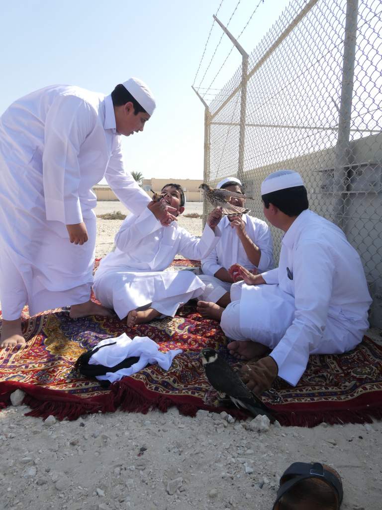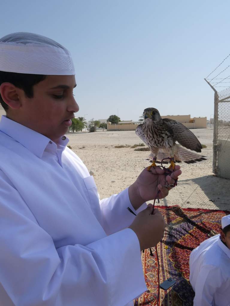 Tout au nord de l’île nous nous arrêtons dans la petite ville de Al Ruwais où nous faisons la rencontre de jeunes Qataris jouant avec leurs…faucons. Nous discutons un peu avec eux, le moment est fort agréable et nous en apprenons beaucoup sur ce sport national. Nous décidons de rester dans ce joli coin mais ne pourrons malheureusement pas nous baigner, le littoral étant vaseux.. Quel dommage avec ces chaleurs un bon bain n’aurait pas été de refus !