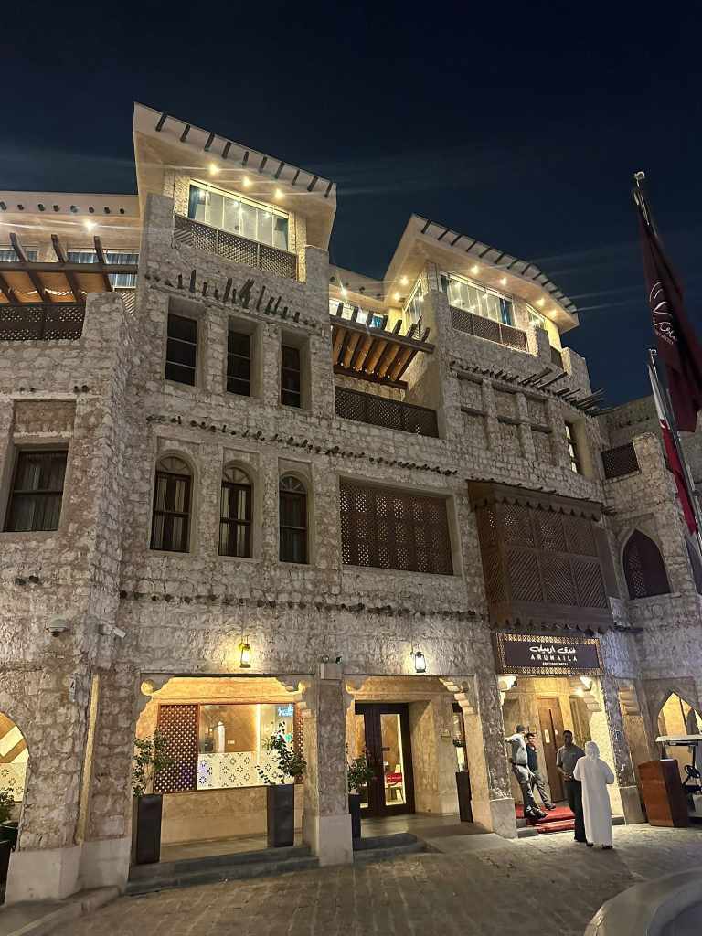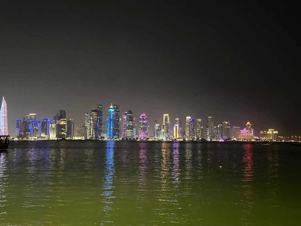 Nous nous octroyons deux nuits dans un hôtel en plein centre-ville, la chaleur accablante nous a usés et nous ressentons le besoin de prendre un peu de repos.. la clim et la machine à laver seront les bienvenues ainsi que la piscine sur le toit de l’hôtel ! Nous partons à la découverte de Doha, et commençons par la corniche qui nous offre une vue spectaculaire sur les gratte ciels. Puis nous nous baladons dans le souk Waqif et partons à la découverte des magasins de fauconniers. Ici c’est un art et beaucoup de boutiques leur sont consacrées.. c’est assez inédit de découvrir tous ces faucons attachés ou aveuglés.. nous avons beaucoup à apprendre. Lors de notre balade nous tombons nez à nez avec des dromadaires et passons un bon moment avec eux. Cependant nous remarquerons que Doha est une ville très touristique, de nombreux français y séjournent (ainsi que d’autres nationalités) et on peut voir de nombreux magasins de souvenirs.. ce que nous n’avions pas vu depuis Istanbul en Turquie !