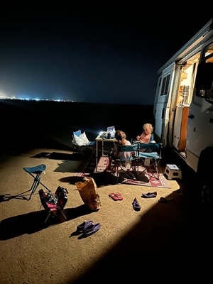 Nous reprenons le camion et allons nous poser dans un spot connu des ioverlanders, sous l’ombre du Hilton, directement sur la plage ! C’est calme, propre et nous pouvons même faire le plein d’eau grâce au jardinier de l’hôtel.